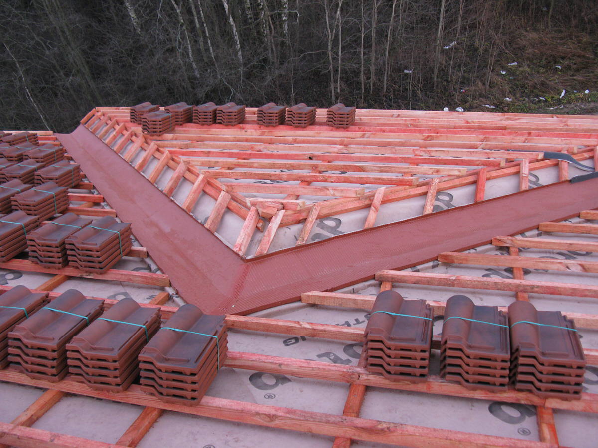 Устройство кровли с установкой усиленной стропильной системы под керамочерепицу. Профессиональная бригада кровельщиков в короткие сроки перекроет крышу дома, дачи, коттеджа, выполняем работы с выездом в Южноуральске.