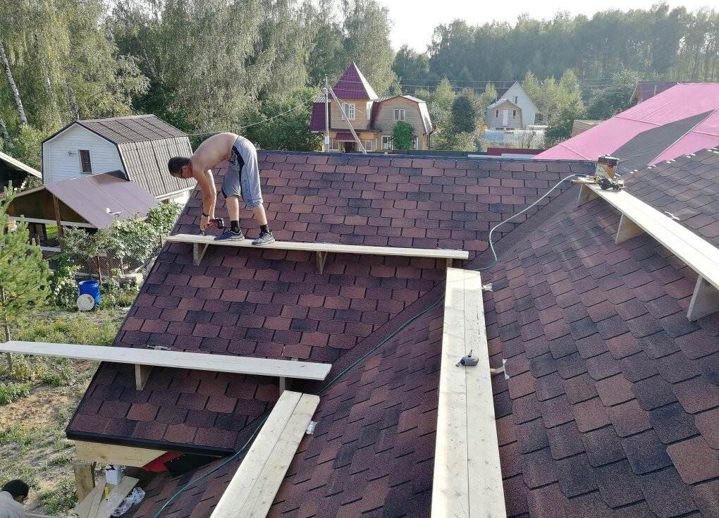 Мы соблюдаем все требования к кровельным работам с гибкой кровлей: она укладывается на твёрдую сплошную обрешётку внахлёст.